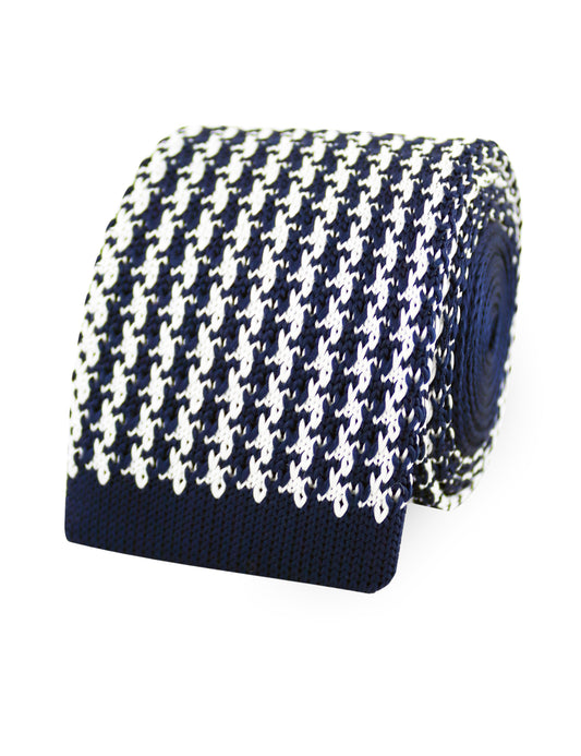 Houndstooth Design Knitted Tie With Square End - Navy Blue