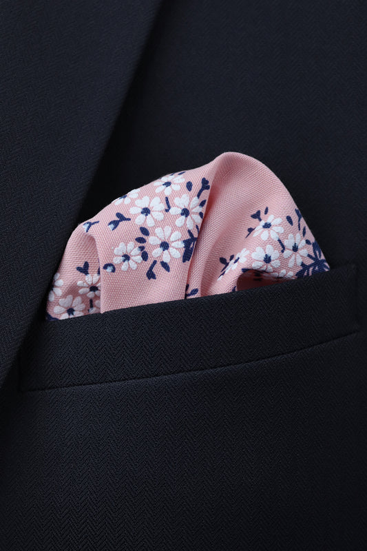 100% Cotton Floral Print Pocket Square - Pink & Navy