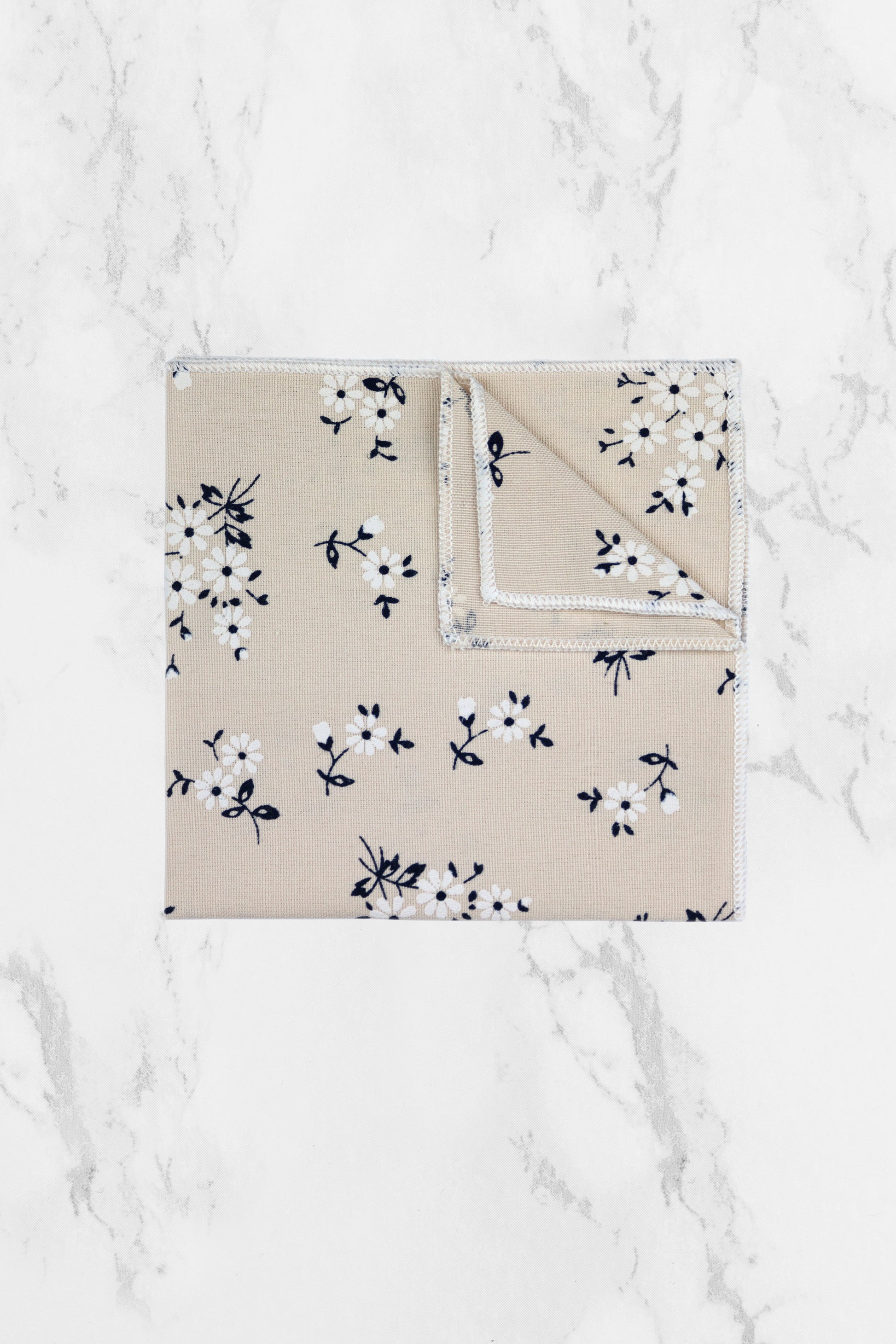 100% Cotton Floral Print Pocket Square - Cream & Navy
